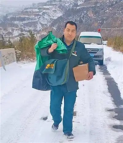 “今天下雪,車最多開(kāi)到半山腰,后面的路還得靠腿走,所以得早點(diǎn)出發(fā)。”趙元瑞說(shuō)著發(fā)動(dòng)了車。作為鎮(zhèn)里的郵遞員,趙元瑞幾乎天天在溝壑縱橫、山路起伏的山梁間往返,這一條條熟悉的郵路,他已經(jīng)走了20多年。10多個(gè)行政村、上百個(gè)自然村,哪段路不好走,哪戶人家常年在家,他心里都有數(shù)。
