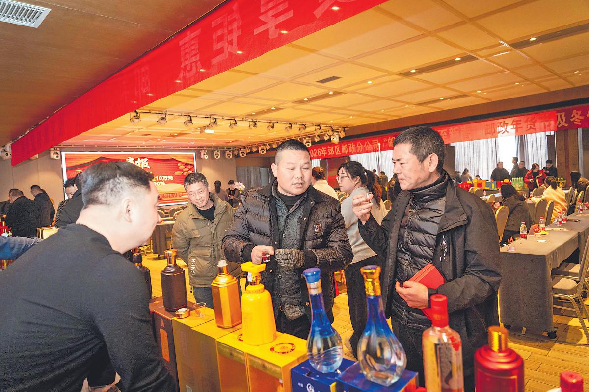 大單品熱銷激起客流與增收的雙重漣漪。不少村級站點靠著糧油大單品的優惠價格,吸引村民扎堆囤貨,客流較平日翻了兩倍,真正實現“以大單品聚人氣、以人氣促增收”。社區郵樂購站點憑借酒水禮盒的品質優勢,成了周邊居民年貨采購的“打卡地”,客戶黏性顯著增強。“郵政組織的‘年貨節’特別給力,不僅可以享受源頭直供價,還幫我開直播、搞宣傳。這不,光大豆油我就賣了400多桶!”錢老板擦著額頭的汗水,笑容藏都藏不住。