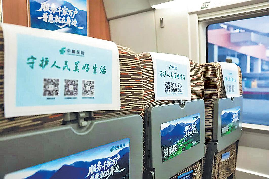 此次中郵保險品牌專列覆蓋網絡廣闊,以北京、上海、廣州、哈爾濱為主要始發點,廣泛輻射東北、華北、華東、華中、華南、西南及西北地區的立體傳播網絡,精準連接中郵保險各省級分公司服務區域,觸達核心受眾。列車上,中郵保險品牌以多元媒體形式全方位貼近旅客,車身外彩貼、座位頭片、桌貼、海報、品牌天幕(行李架)、車外門貼、車廂內播音提示及LED顯示屏等多種載體,共同營造出沉浸式服務氛圍。